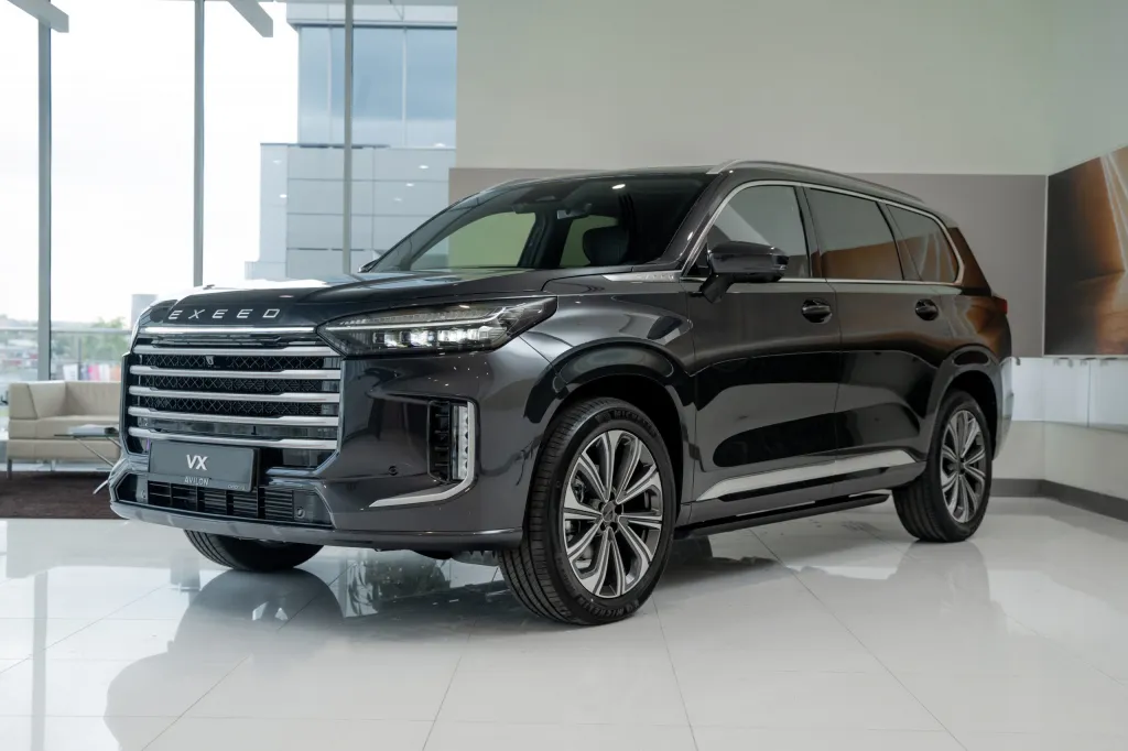 Exeed VX — это совсем другой уровень, здесь уже начинается территория настоящего премиума. Если Tiggo 8 Pro Max — это семейный автомобиль, то VX — это флагманский внедорожник. После рестайлинга 2026 года автомобиль получил не только обновленную внешность, но и техническую начинку, о которой мечтают многие ценители классического автопрома. Шасси построено по стандартной для современного класса схеме: независимая подвеска типа Макферсон спереди и многорычажная сзади, дополненная гидравлическими амортизаторами и стабилизаторами. В топовых версиях появилась адаптивная пневмоподвеска, которая умеет не только менять клиренс, но и подстраиваться под стиль вождения, сглаживая все неровности до состояния идеально ровного дорожного полотна. В салоне царит настоящая роскошь: трикотажный потолок, кожа Nappa и полное отсутствие намека на бюджетность.